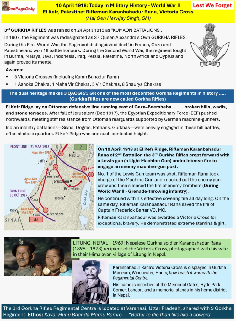 His gallantry award citation stated that while under heavy enemy fire in extreme high-altitude conditions, he initiated a daring counter-ambush, killing 10 enemy soldiers and forcing others to abandon their posts, allowing the unit to take control of the entire ridge.