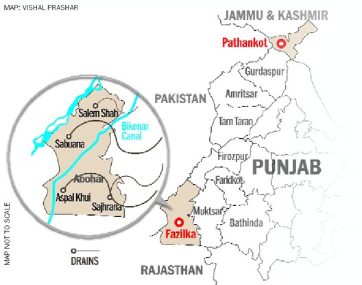 In village like Shajrana, well-off farmers are now feeling helpless. “Farmers with up to 80-acre land are forced to buy wheat because no crop grows in their fields due to water logging,” says Om Singh, sarpanch of the village. In and around the village, about 700 acres have been rendered infertile. “Many who once owned tractors work as labourers,” says Om Singh. “Most of the villagers are under debt.” There are pools of accumulated water in fields at Shajrana village. There is vast web of drains in the Abohar-Fazilka-Jalandhar belt. These include Aspal, Khui Kheria, Sajhrana, Bam, Salem Shah and Fazilka drains. Many of them emerge from the Muktsar region. The perception among people, especially, the ones living in the village near border in Fazilka district, is that since CM Badal wanted to get rid of water-logging in his home town Muktsar, several new drains were dug up in the area. Starting from the Lambi constituency and other parts of Muktsar these drain out into the Fazilka belt.”The Abulkhurana drain is a big nuisance. It carries filthy sewer water of Abohar town,” says Sohan Lal, a farmer and member of Panchayat Samiti. He says farmers plan to move the high court.But officials of the drainage department reject such accusations. The natural flow of water is towards Fazilka. So, water is bound to flow to that side before falling into the Sutlej. “Over the years, the state government has spent about Rs 3,000 crore in the entire Fazilka-Muktsar region solve water-logging,” says an official of the drainage department. Secretary Irrigation KS Pannu says Rs 90 crore were spent on anti-water-logging measures in Fazilka district in 2014-15 and Rs 120 crore were spent during the last fiscal year. Government officials in Fazilka blame Pakistan. Some of the drains end up in the main creek of the Sutlej that crisscrosses the international Border in Ferozepur-Fazilka belt. Farmers accuse Pakistan of blocking the flow of drains in its territory by building a bandh. Under the Indus Water Treaty-1960, Pakistan is supposed to de-silt and maintain the drains such as the ones at Salimshah, Fazilka, Hudiara and Kasur Nala which flow from the Indian side to its territory. They say the spillover from the drains often floods their crops. “We own 50 acres near the border. We also have a small tract of land across the fence on the border. We grow paddy and wheat. Flooding caused by Pakistan has made us unable to harvest last four crops. We did not get any compensation,” says Milkh Raj of Beriwala village.Additional Deputy Commissioner Development Charandev Singh Mann says about Rs 152 crore was given as compensation to farmers whose cotton crop was damaged by white fly besides about Rs 18 crore to the landless labourers affected by crop failure.Secretary Irrigation KS Pannu says the Punjab Government has written to Commissioner (Indus), Ministry of Water Resources, to take up de-silting and de-weeding of the Fazilka and other drains with Pakistan in their territory. “We have sent additional information sought by the Commissioner. De-weeding is also required inside the Indian territory.”There are hundreds of farmers who own land across the fence in about 212 villages located along the border in the Punjab region. They have been demanding relaxation in restrictions on movement. Recently when a parliamentary committee attached to the Home Affairs visited the border belt, Akali MP member Prem Singh Chandumajra suggested the government exchanged some land across the fence, wherever possible, with Pakistan. This can relieve the pressure on farmers.