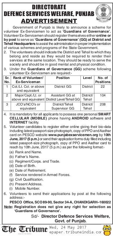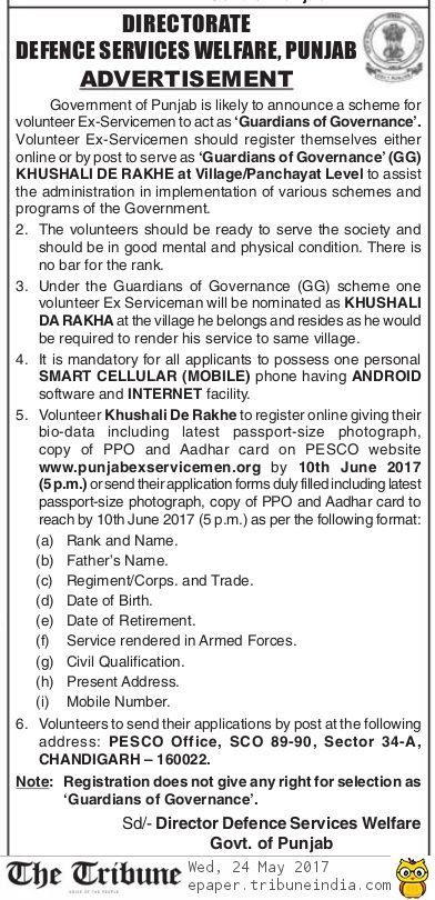 Reluctant to leave it to officialdom, Punjab Chief Minister Capt Amarinder Singh has begun putting in place a mechanism, to be christened Guardians of Governance (GoG), to oversee the implementation of government schemes and to gather feedback on the working of officials to ensure they did not indulge in corrupt practices. The Congress, in its poll manifesto, had promised to fight corruption. (Follow The Tribune on Facebook; and Twitter @thetribunechd)For the purpose, the Amarinder Singh government intends to recruit and train ex-servicemen at the village and block level. Lt Gen TS Shergill (retd), Adviser to the CM, today held a meeting to prepare a blueprint for GoG appointments.It is not yet clear if the ex-servicemen recruited for the purpose would be given an honorarium or a fixed salary. Punjab has more than 12,000 villages. The number of ex-servicemen stands at two lakh. Sources said the ex-servicemen would be trained in information technology and a special portal created for them to upload information. Action would be taken on the report filed by them within a stipulated period. Besides overseeing implementation of schemes, they would report on delivery of services such as healthcare, education, drinking water and power.