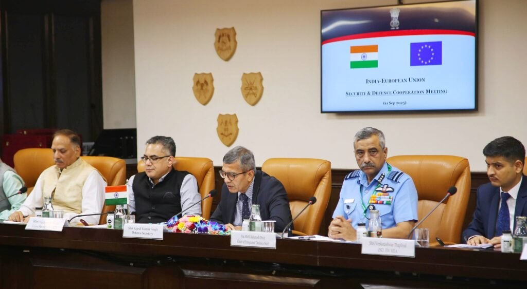 India-European Union (EU) Security and Defence Cooperation meeting took place in New Delhi today. Co-chaired by Defence Secretary Shri Rajesh Kumar Singh and Chair of Political & Security Committee of EU Mrs Delphine Pronk, the meeting focused on capacity building, capability enhancement and emerging challenges.
