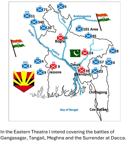 The United States turned a blind eye towards nearly 300,000 Bengalis killed by the Pakistan army in East Pakistan in the months preceding the India-Pakistan war in Dec 1971. This was because the US was using Pakistan as a conduit for a historic rapprochement with Communist China, a country it had no diplomatic ties with. Gary J. Bass author of ‘The Blood Telegram: Nixon, Kissinger and a forgotten genocide’ The Orbat India’s Eastern Command set the Pakistani communication centres as its objectives. •