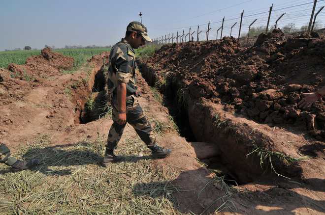 AMK Post (RS Pura), March 4A day after detecting Pakistan’s secret trans-border tunnel here, the BSF today said Pakistan was planning a major terrorist attack in near future after pushing terrorists through the tunnel.While the BSF attributed the detection of the tunnel to its anti-tunnelling drive, a tractor pressed into service on Thursday to clear elephant grass (sarkanda) between the Zero Line and an embankment had run over a stretch that caved in, leading to the detection of the tunnel.Briefing mediapersons after escorting BSF Director General KK Sharma to the spot on his maiden visit to Jammu, BSF, Jammu Frontier, Inspector General (IG), RK Sharma said that after detailed investigations, the Pakistan Rangers were showed the spot and asked to refrain from such nefarious activities.“Evidences will be given to them and we will request them to come forward for investigations and take stern action against the culprits,” said the BSF IG.“Timely detection (of the tunnel) has defeated a big plan of Pakistan. Had they succeeded in their plan, a big infiltration could have been carried,” he added.The BSF has held two flag meetings with the Pakistan Rangers on the issue.When asked how the Pakistan Rangers could be trusted to take action against the culprits, the IG said it was a matter of concern for the BSF also.“We told them that it happened right under their nose, in front of their post (Afzal Saeed) and on their soil and that they were having knowledge of it (tunnel),” he said.We asked them to identify the culprits, take action against them, disclose their plan on the international border and other areas, where tunneling activities might have been undertaken or are being conducted and to stop them immediately, added Sharma.He said the BSF had been continuously undertaking anti-tunneling measures on the entire 198-km-long international border, leading to the detection of the tunnel, he saidThe IG did not rule out the possibility of more such tunnels on the border and said the BSF was taking adequate measures to detect them.