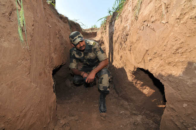 AMK Post (RS Pura), March 4A day after detecting Pakistan’s secret trans-border tunnel here, the BSF today said Pakistan was planning a major terrorist attack in near future after pushing terrorists through the tunnel.While the BSF attributed the detection of the tunnel to its anti-tunnelling drive, a tractor pressed into service on Thursday to clear elephant grass (sarkanda) between the Zero Line and an embankment had run over a stretch that caved in, leading to the detection of the tunnel.Briefing mediapersons after escorting BSF Director General KK Sharma to the spot on his maiden visit to Jammu, BSF, Jammu Frontier, Inspector General (IG), RK Sharma said that after detailed investigations, the Pakistan Rangers were showed the spot and asked to refrain from such nefarious activities.“Evidences will be given to them and we will request them to come forward for investigations and take stern action against the culprits,” said the BSF IG.“Timely detection (of the tunnel) has defeated a big plan of Pakistan. Had they succeeded in their plan, a big infiltration could have been carried,” he added.The BSF has held two flag meetings with the Pakistan Rangers on the issue.When asked how the Pakistan Rangers could be trusted to take action against the culprits, the IG said it was a matter of concern for the BSF also.“We told them that it happened right under their nose, in front of their post (Afzal Saeed) and on their soil and that they were having knowledge of it (tunnel),” he said.We asked them to identify the culprits, take action against them, disclose their plan on the international border and other areas, where tunneling activities might have been undertaken or are being conducted and to stop them immediately, added Sharma.He said the BSF had been continuously undertaking anti-tunneling measures on the entire 198-km-long international border, leading to the detection of the tunnel, he saidThe IG did not rule out the possibility of more such tunnels on the border and said the BSF was taking adequate measures to detect them.