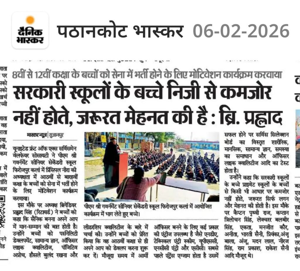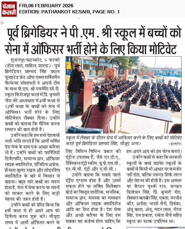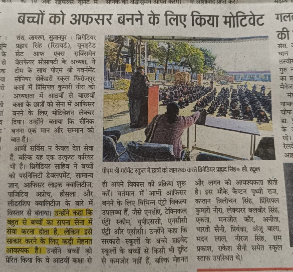 Motivation of Govt Senior Secondary School Sujanpur to Join Army as an Officer.Feeling Good