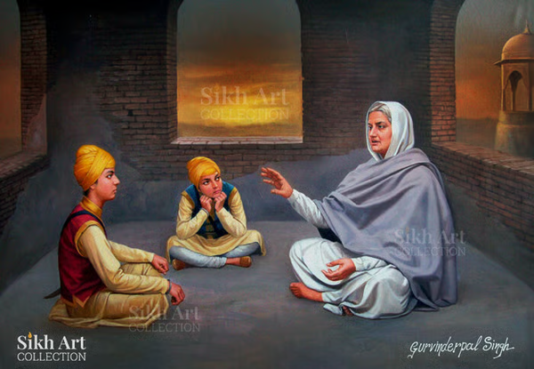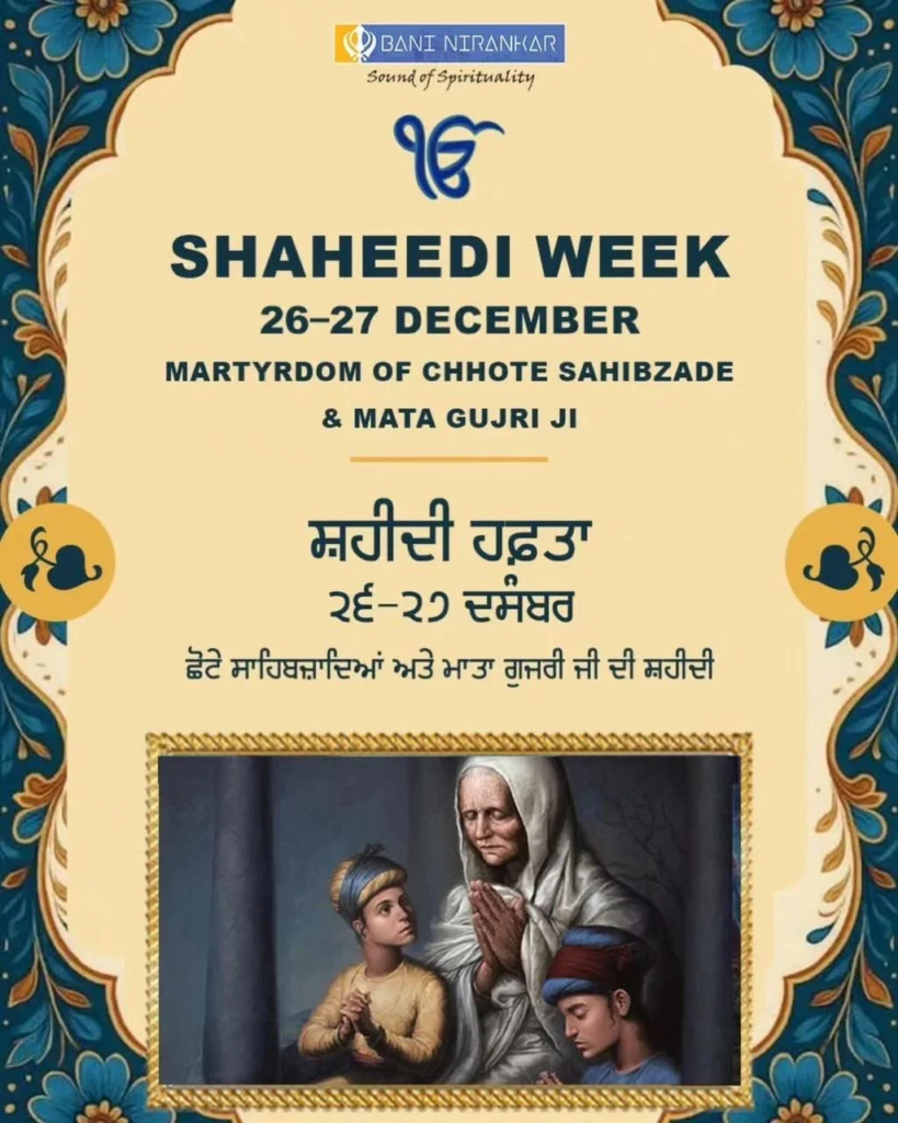 Chote Sahibzade” (Little Princes) refers to the two youngest sons of Guru Gobind Singh, Sahibzada Zorawar Singh (age 9) and Sahibzada Fateh Singh (age 6), who attained martyrdom in Sirhind in 1704, refusing to convert to Islam and famously being bricked alive by the Mughals, symbolizing ultimate bravery and commitment to faith, an event commemorated annually in December as Saka Sirhind.