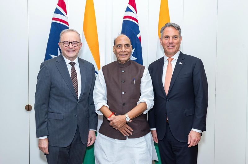 Defence Minister Rajnath Singh, who is on a two-day visit to Australia (October 9-10), held a bilateral meeting with Australia’s Deputy Prime Minister and Defence Minister Richard Marles in Canberra.