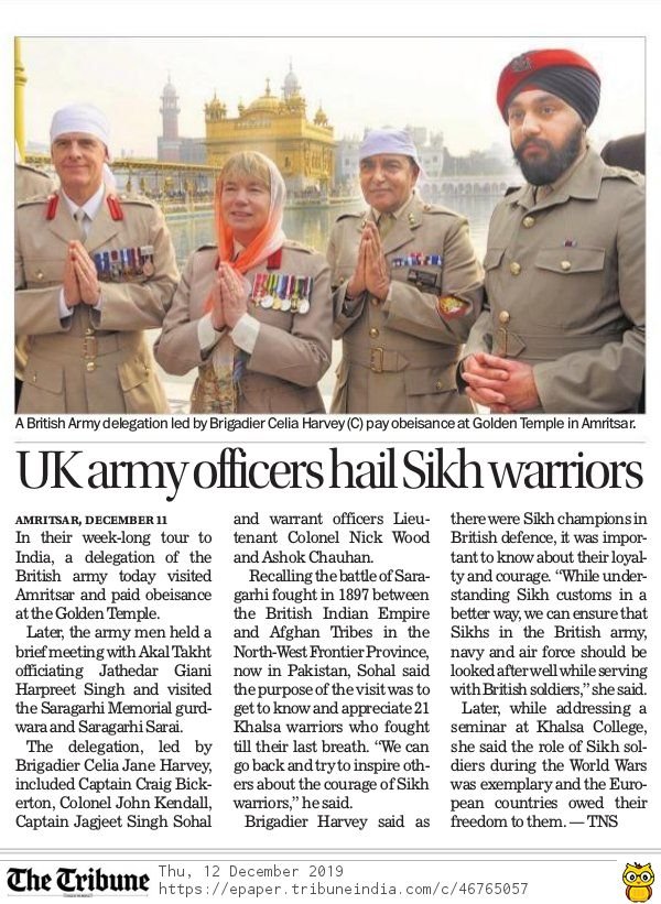 “Just 21 brave Sikh soldiers faced 10,000 Afghans tribal men and fought till the last breath,” said Colonel Johan Kendall, who was also part of the delegation.