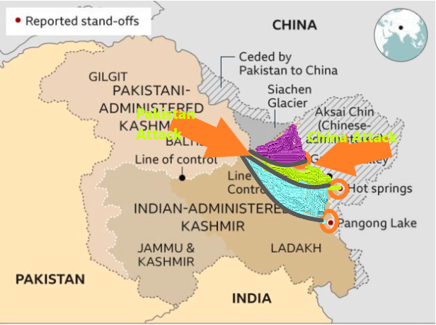 Both these forces would capture the portion of Ladakh; that could be in one of the three ways shown above (depicted in three colors).